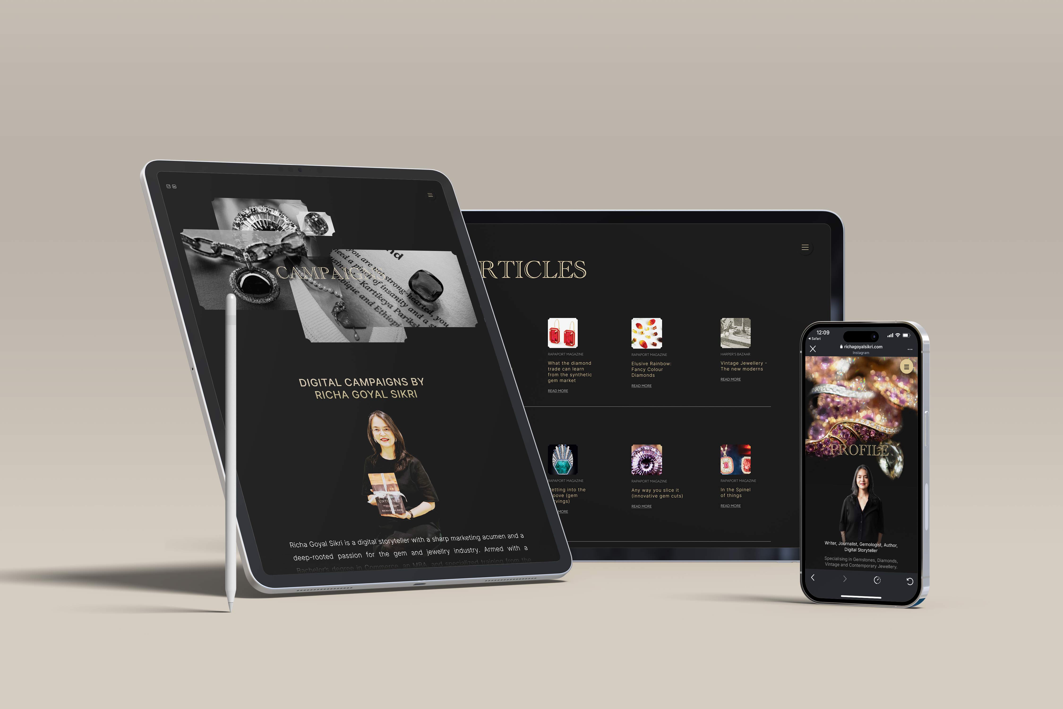 We built a refined personal brand for Richa Goyal Sikri — a storyteller, gemologist, journalist — combining strategy, identity, website design, and narrative voice. A space where expertise meets personality, and every detail speaks of her story and craft.